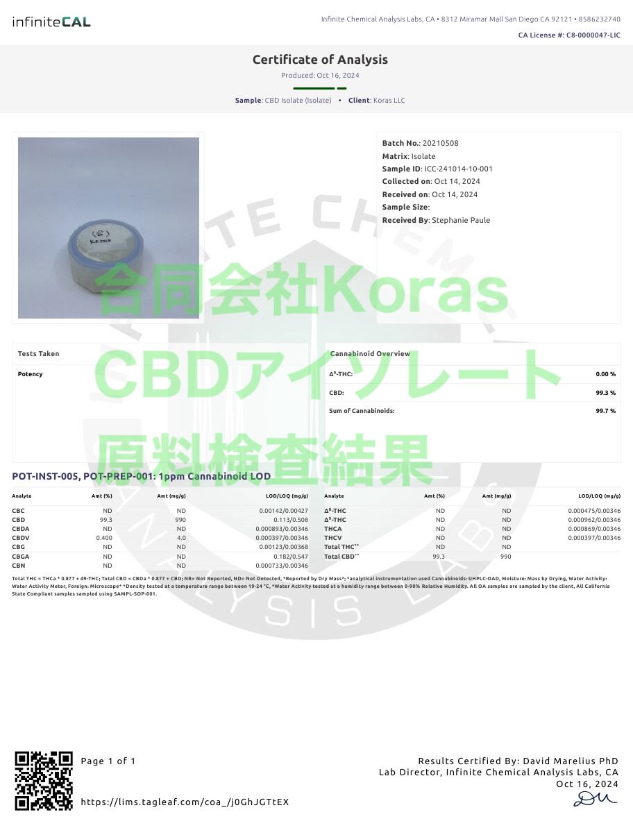 商品名:Koras CBD キャンドル アロマゼロ 30mg